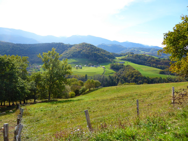 La descente assez raide vers le village d'Asque est superbe, la vallée du Cilh est chaudement colorée.