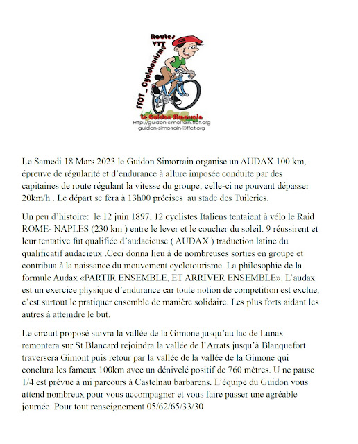 Aux sorties hebdomadaires autour de Mirande (mardi et samedi) viennent s'ajouter les randonnées extérieures, les séjours, les raids...